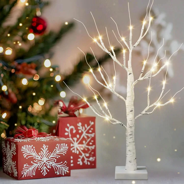 🎄LED LIGHTED BIRCH TREE: The white birch tree with lights are beautiful and attractivethe. Trunk is covered with the natural birch tree bark texture tape, Lighted birch tree is an essential decor for celebrating festivals . Overall height 2FT with 4" x 4" base and 24 led warm white lights, the light up tree is ideal as a table centerpieces, creating a charming focal point on your fireplace mantel to cozy up the upcoming festivals!